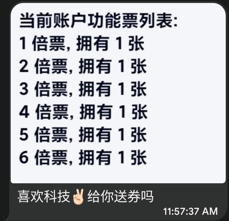- 随后开始有人反馈科技哥发送的倍率票日期有问题,科技哥开始给全服玩家塞敏感日期的倍率票,这时候科技哥的动机我就不好评价了