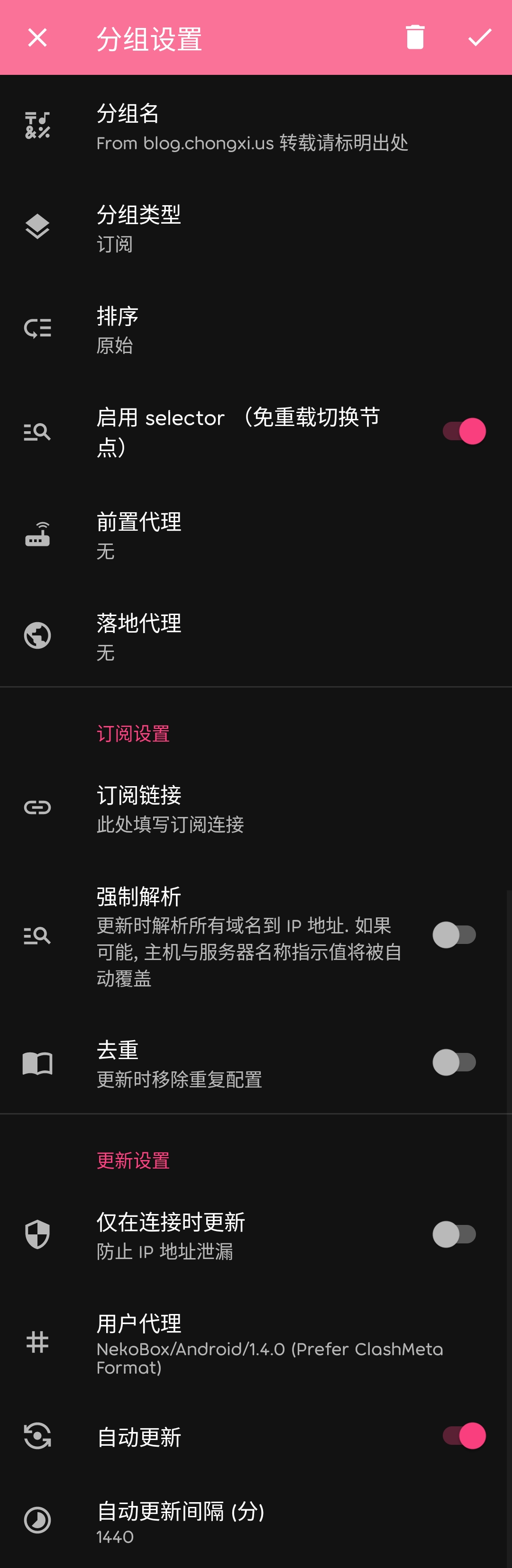 NekoBox是一款拥有极高上限的代理工具。它的默认设置足以满足日常需求,但其真正的魅力在于其绝佳的分流规则以及对协议的广泛支持。